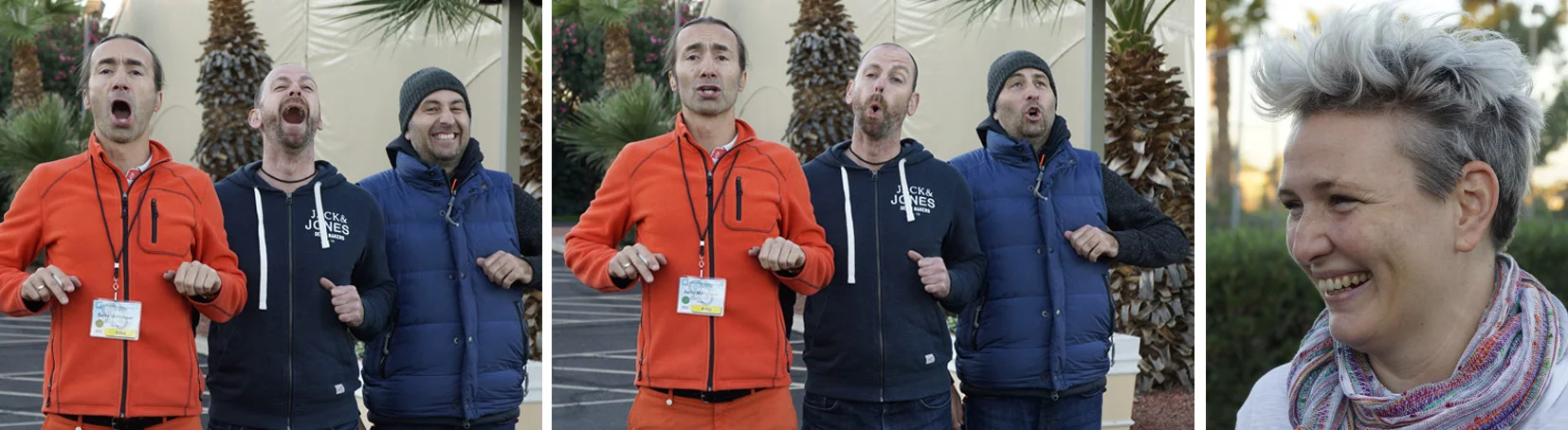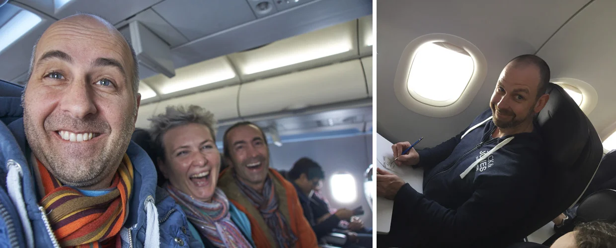 Aber zurück zum Anfang. Wir hatten beim Hinflug schon sehr viel zu lachen. Wir, das ist das österreichische AlpDreamTeam, eine kleine Delegation der EuroCature, von links beginnend: Bernd Ertl, Birgit Vlk, Bernd Weidenauer und Ray Van Stift.