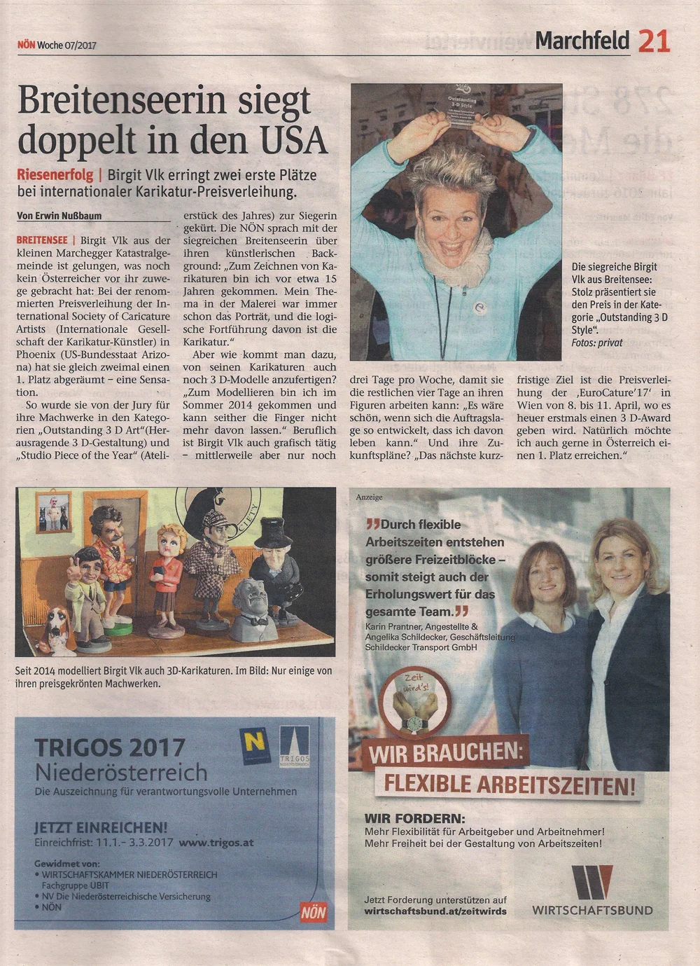 Die Redakteurin des Magazines "EXAGGERATED FEATURES" der ISCA (International Society of Caricature Artists) hat mich Anfang des Jahres eingeladen, einen Film über die Entstehung einer Figur zu publizieren. Ich hatte davor zwar keinerlei Erfahrung im Filmen, habe die Herausforderung aber gerne angenommen, mir die HandyCam meines Bruders ausgeborgt, das richtige Stativ für meine Zwecke gefunden und losgefilmt. 1 Woche lang. Dass ich dann 2 Tage lang Filmmaterial sichten und schneiden musste, war mir am Anfang noch nicht ganz klar. An alle Filmschneider: Hut ab! Da braucht man gute Nerven, Geduld und Sitzfleisch! Aber hier geht's nun zum Filmchen: